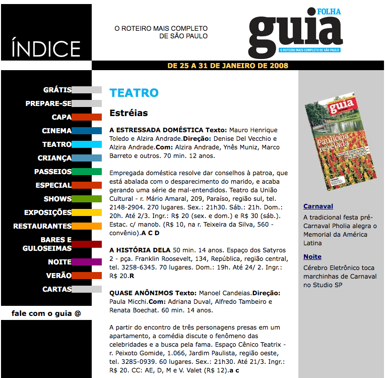 Informações sobre a peça, no Guia da Folha. Jornal Folha de S. Paulo