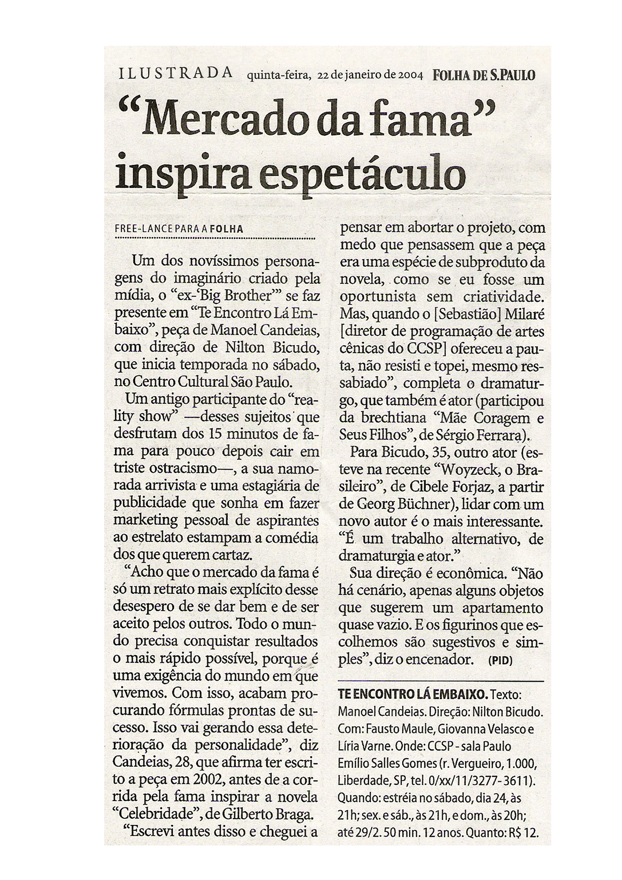 Matéria sobre a estreia da peça no jornal Folha de S. Paulo